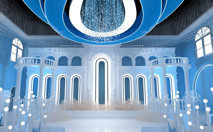 科尔沁右翼前居易蓝色调婚礼堂效果展示